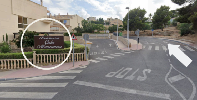 Arrive by car to the entrance of the urbanization where you will see the RESIDENCIAL CALA MANZANERA sign.