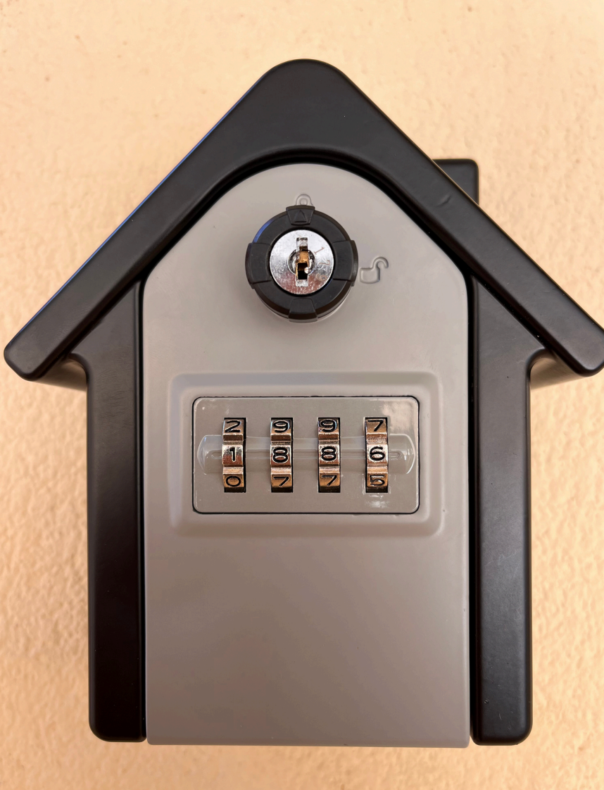 Justo a la derecha de la puerta tiene la caja de llaves. Utiliza el código 1886 para abrirla.